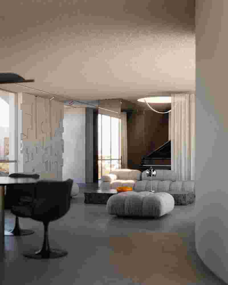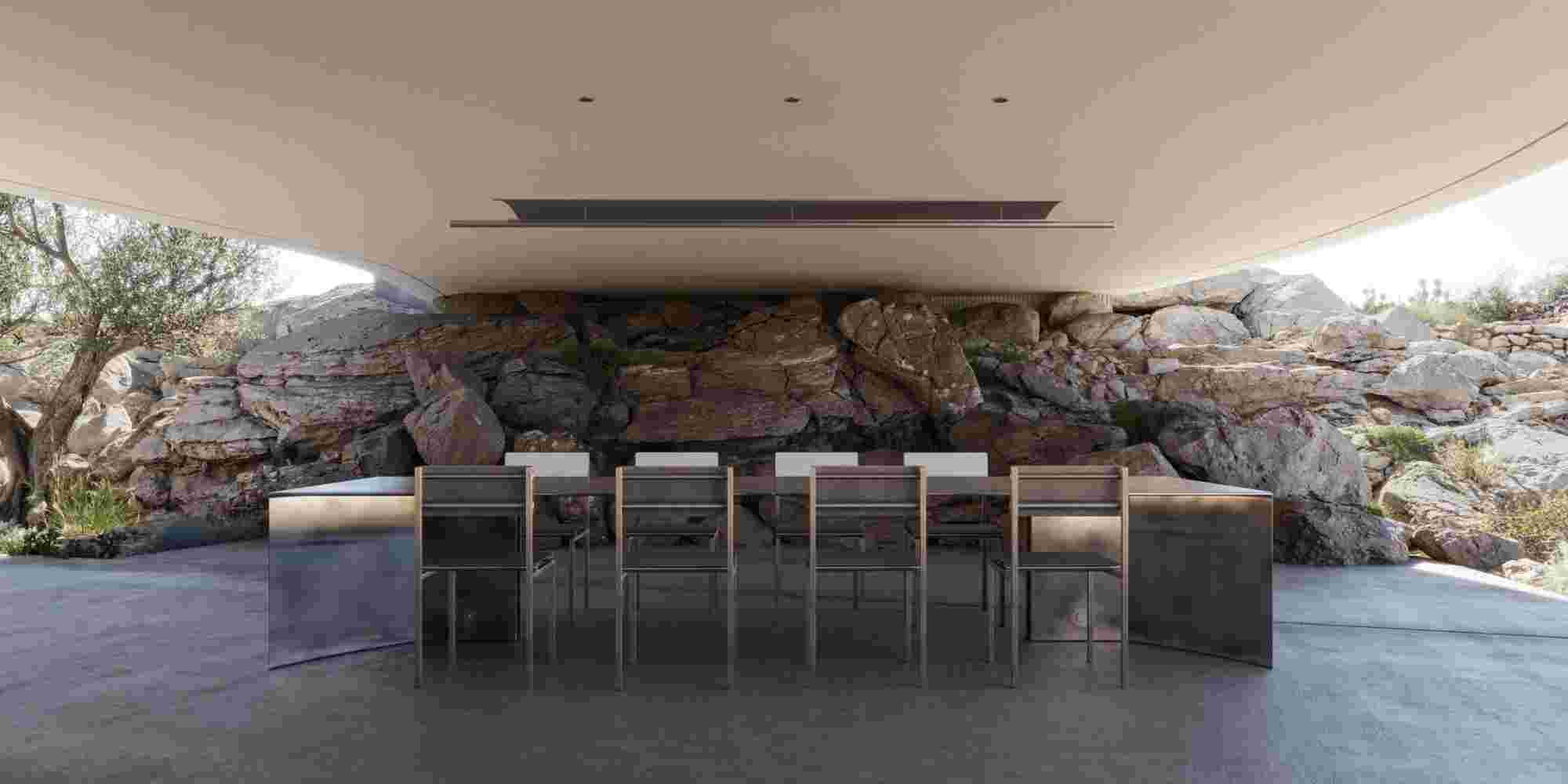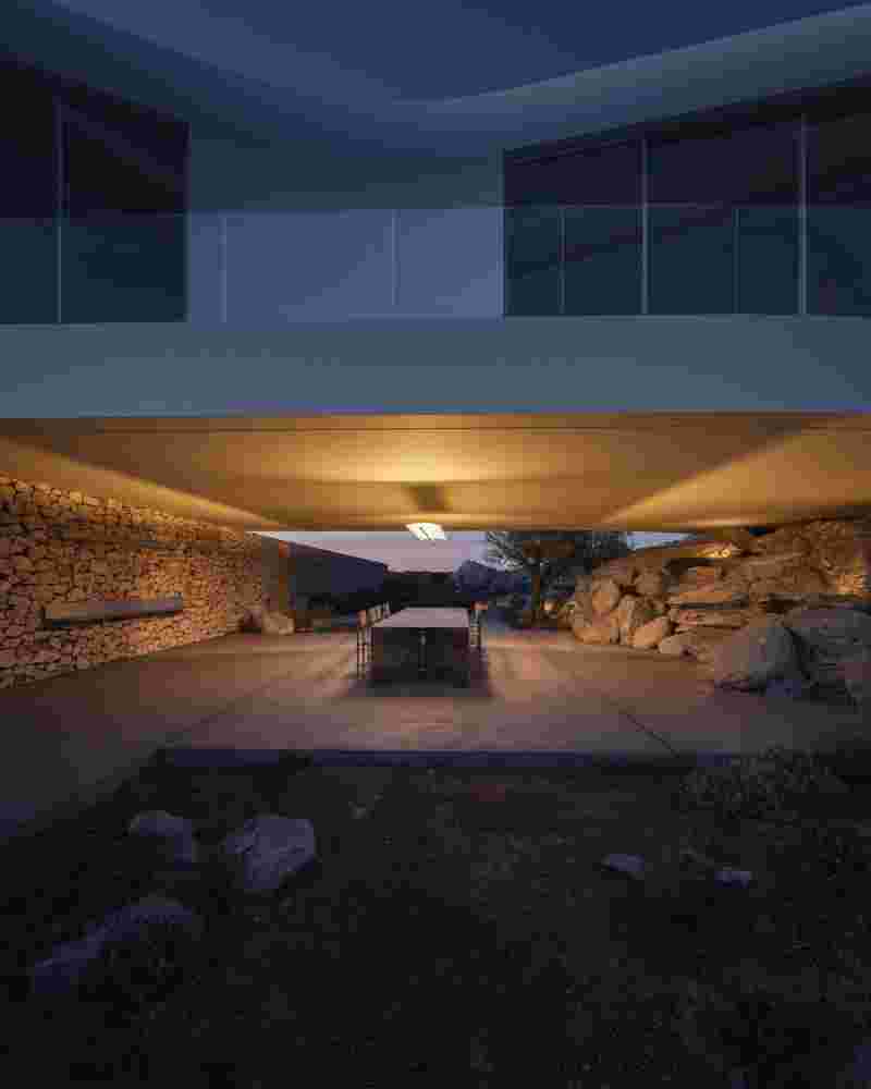 We made the conscious choice to avoid the sterile imitation of the existing paradigm of a succession of solids and voids and chose instead to propose their “merging” into a single monolith. This allowed us to explore the limits of the form, always keeping function as our starting point.