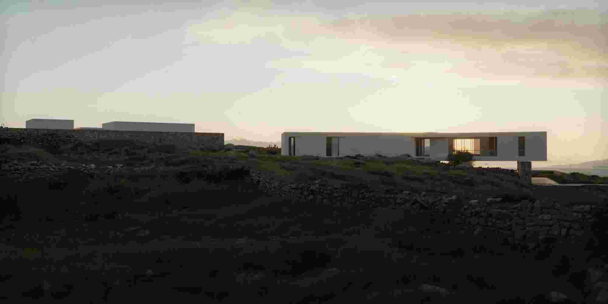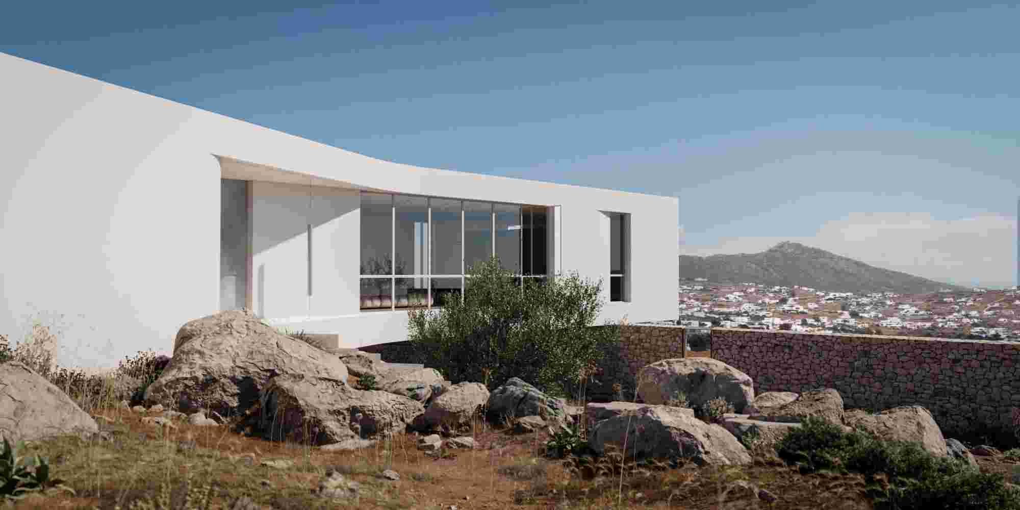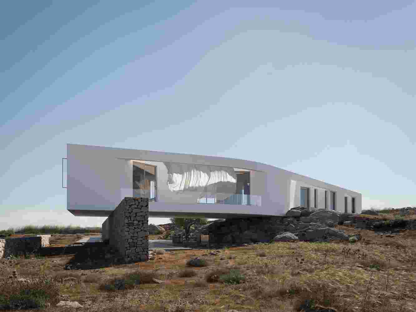 The place defines two very important elements, the imposing view of the Aegean sea and the intense unevenness of the ground that forms two distinct levels. The solid is modified, it is “sculpted” from the north wind, it is curved to protect its insides, it is pierced to bring in the refreshing salty seα wind. The light passes abundantly in the new spaces that are formed. The volume is based on two points, utilizing the geomorphology of the soil and the modern construction possibilities. It reaches high, turning its gaze to the horizon and at the same time protects its inhabitants from the elements.