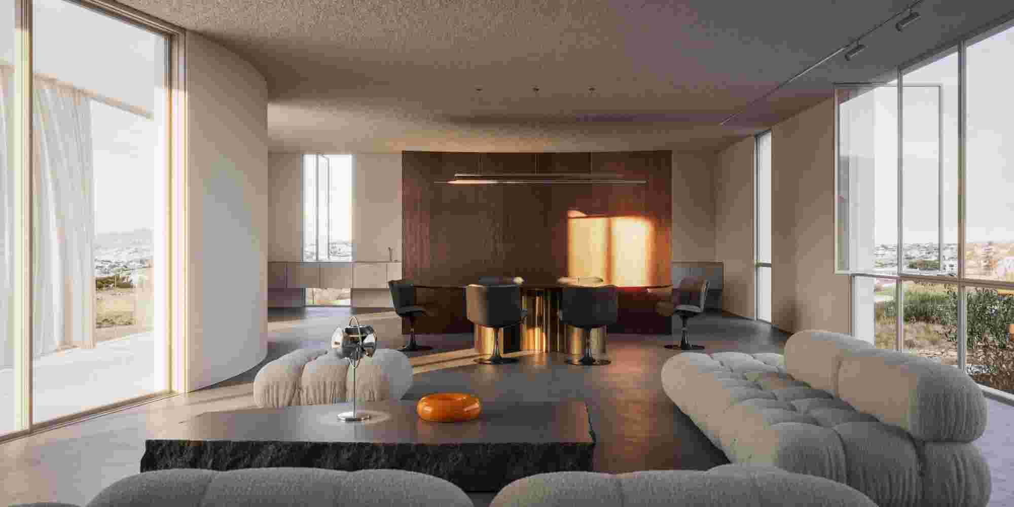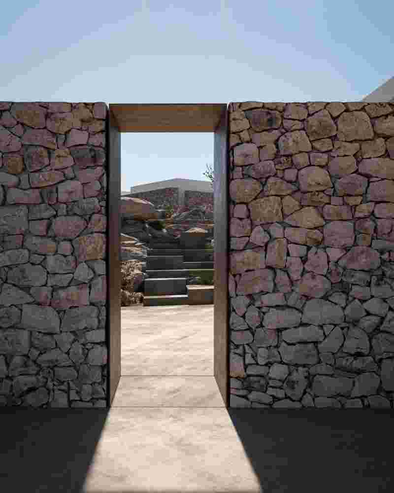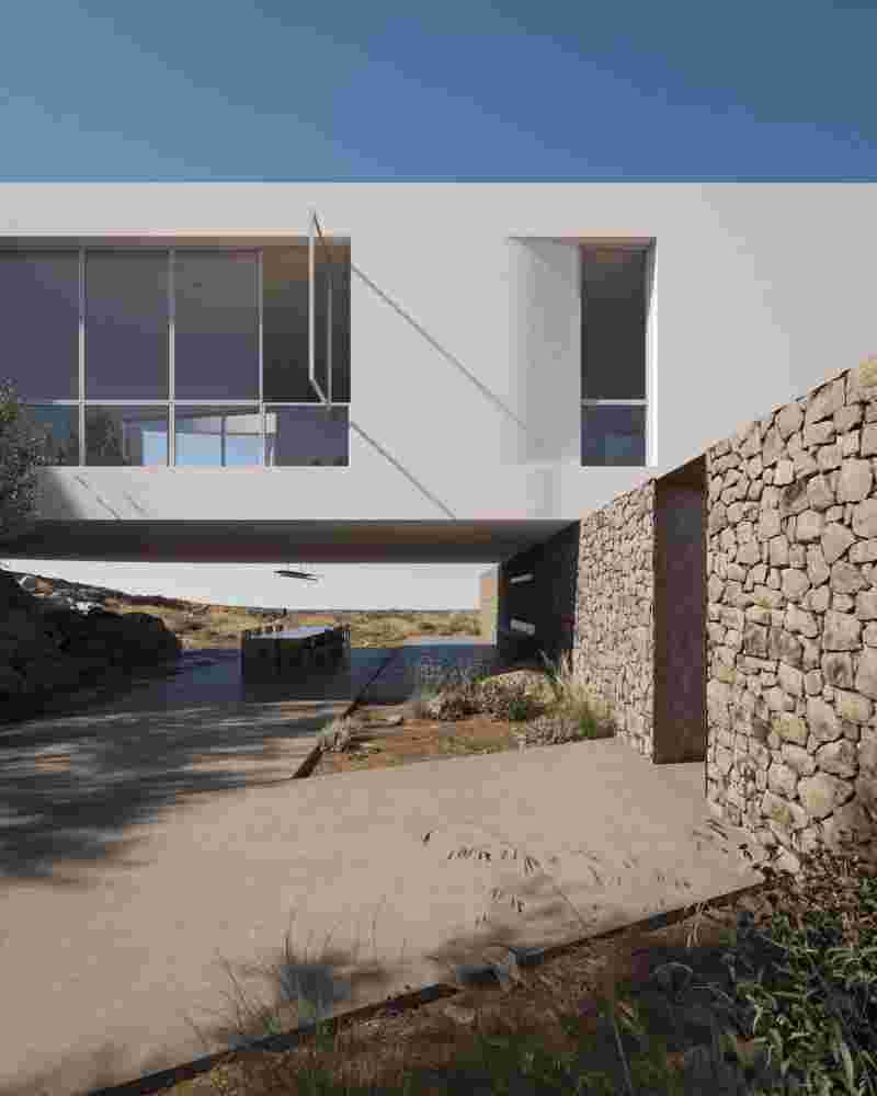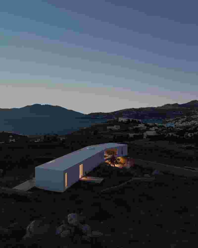 The place defines two very important elements, the imposing view of the Aegean sea and the intense unevenness of the ground that forms two distinct levels. The solid is modified, it is “sculpted” from the north wind, it is curved to protect its insides, it is pierced to bring in the refreshing salty seα wind. The light passes abundantly in the new spaces that are formed. The volume is based on two points, utilizing the geomorphology of the soil and the modern construction possibilities. It reaches high, turning its gaze to the horizon and at the same time protects its inhabitants from the elements.