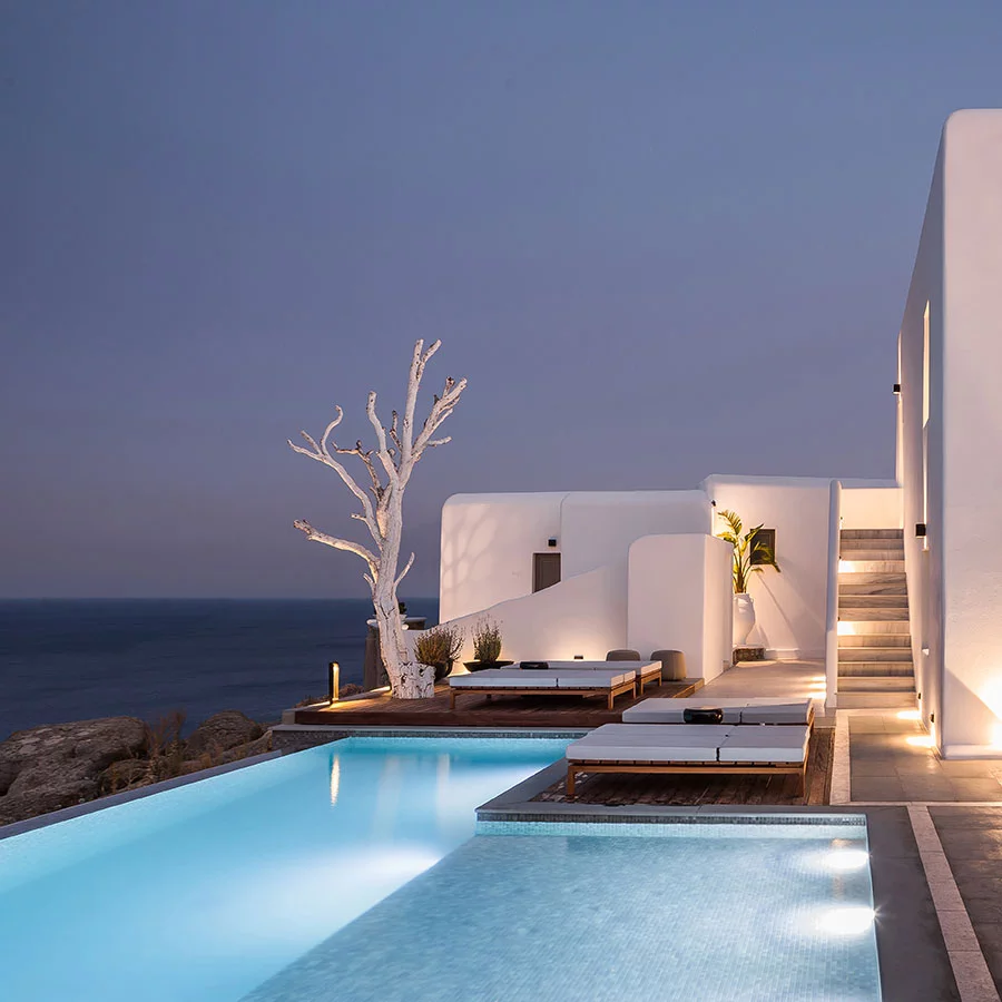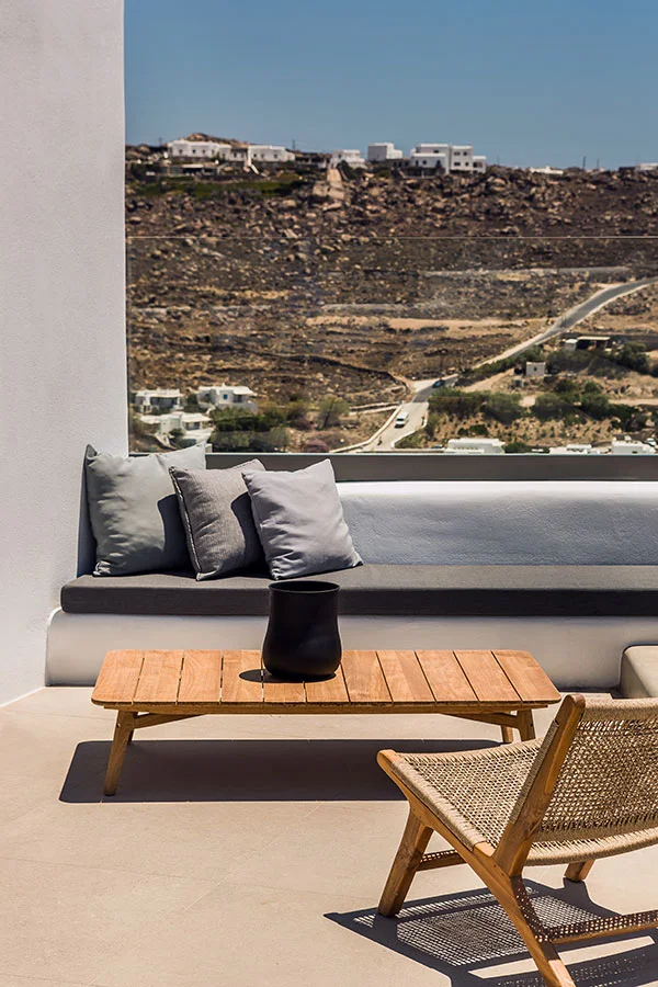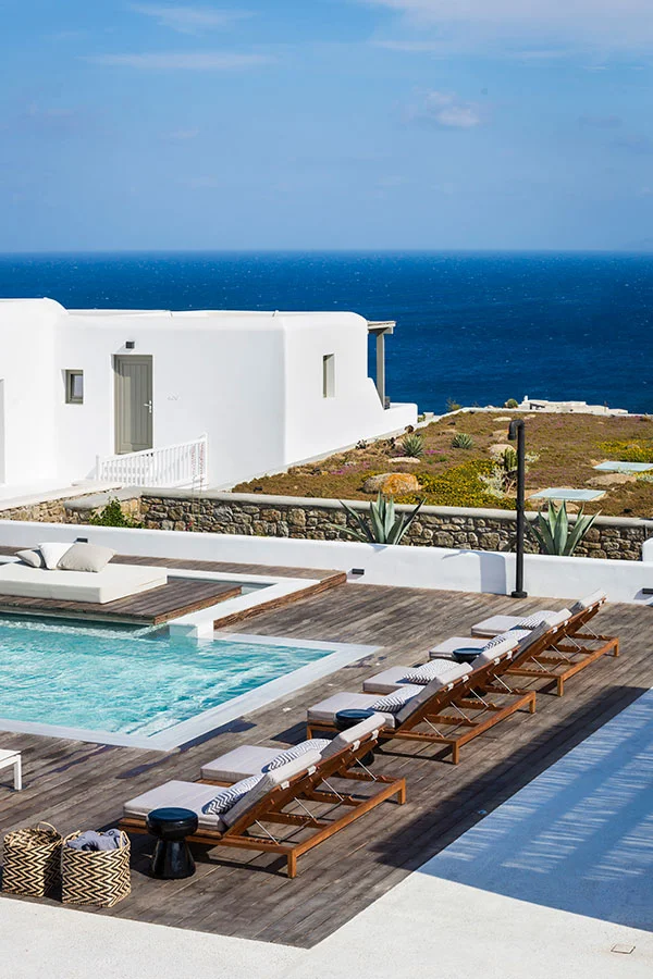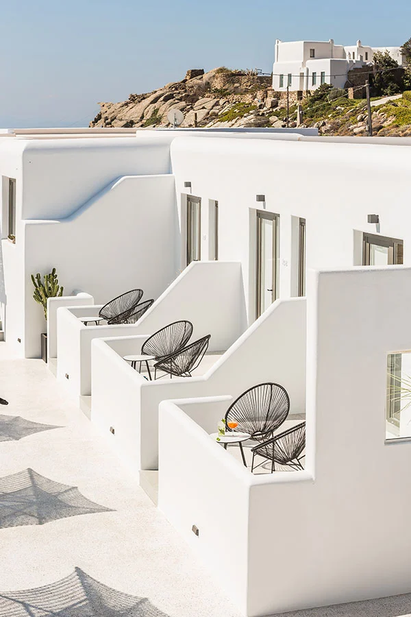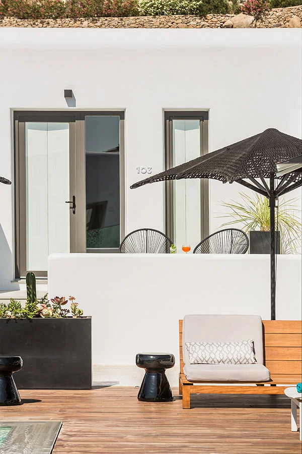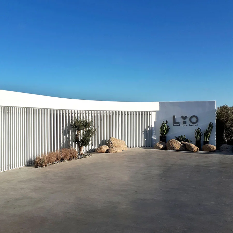 This study concerns the transition of an existing building complex into a hotel unit, including the general repair of the facilities and the landscape design. Located near the Super Paradise beach, it consists of 7 separate building units that host a total of 18 rooms and suites. During 2020, the reception area and some suites were renovated and refurbished, in order to welcome the visitors after the pandemic crisis.