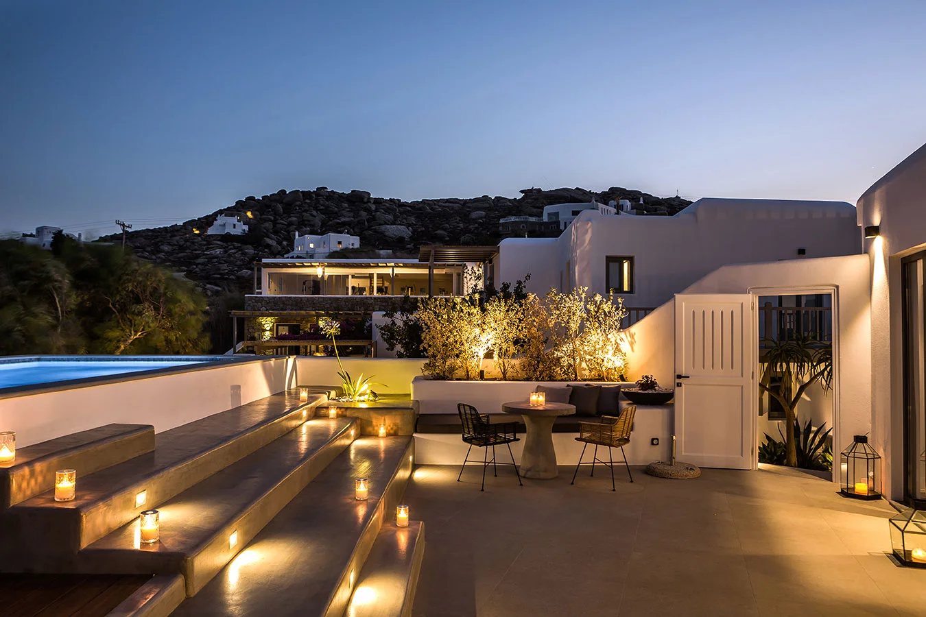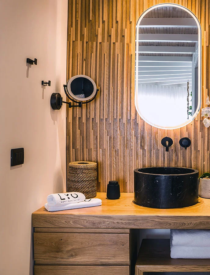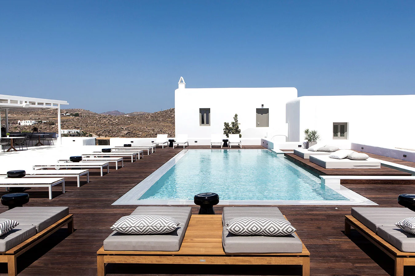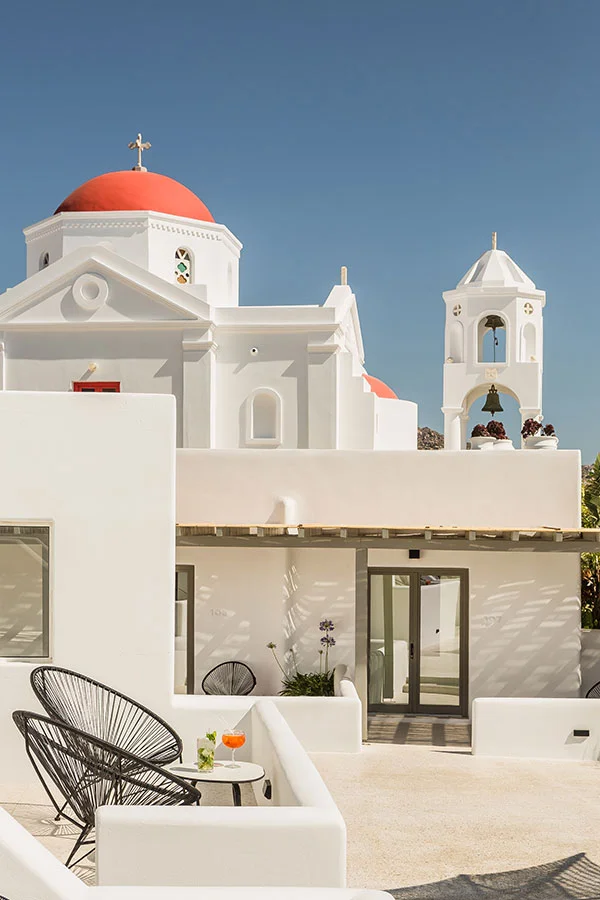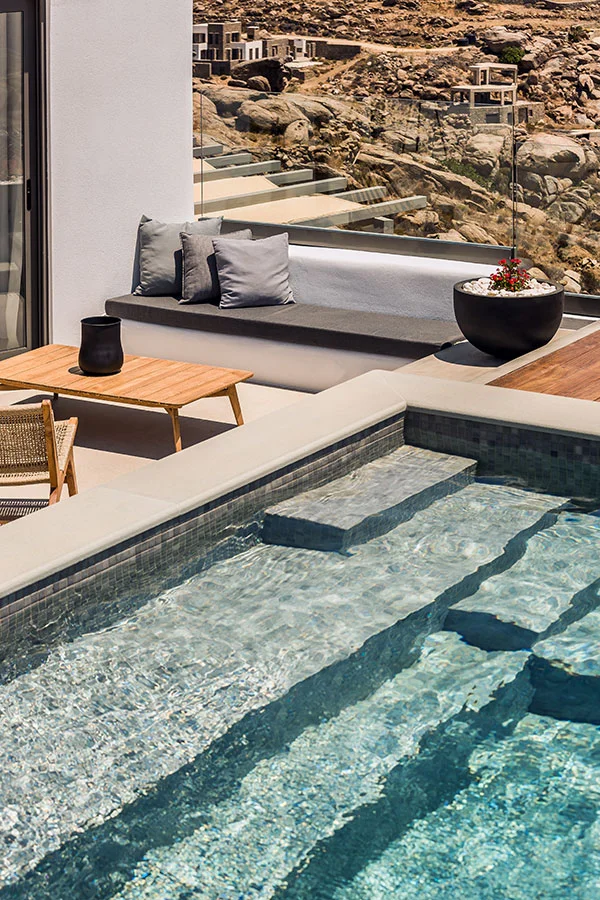 This study concerns the transition of an existing building complex into a hotel unit, including the general repair of the facilities and the landscape design. Located near the Super Paradise beach, it consists of 7 separate building units that host a total of 18 rooms and suites. During 2020, the reception area and some suites were renovated and refurbished, in order to welcome the visitors after the pandemic crisis.