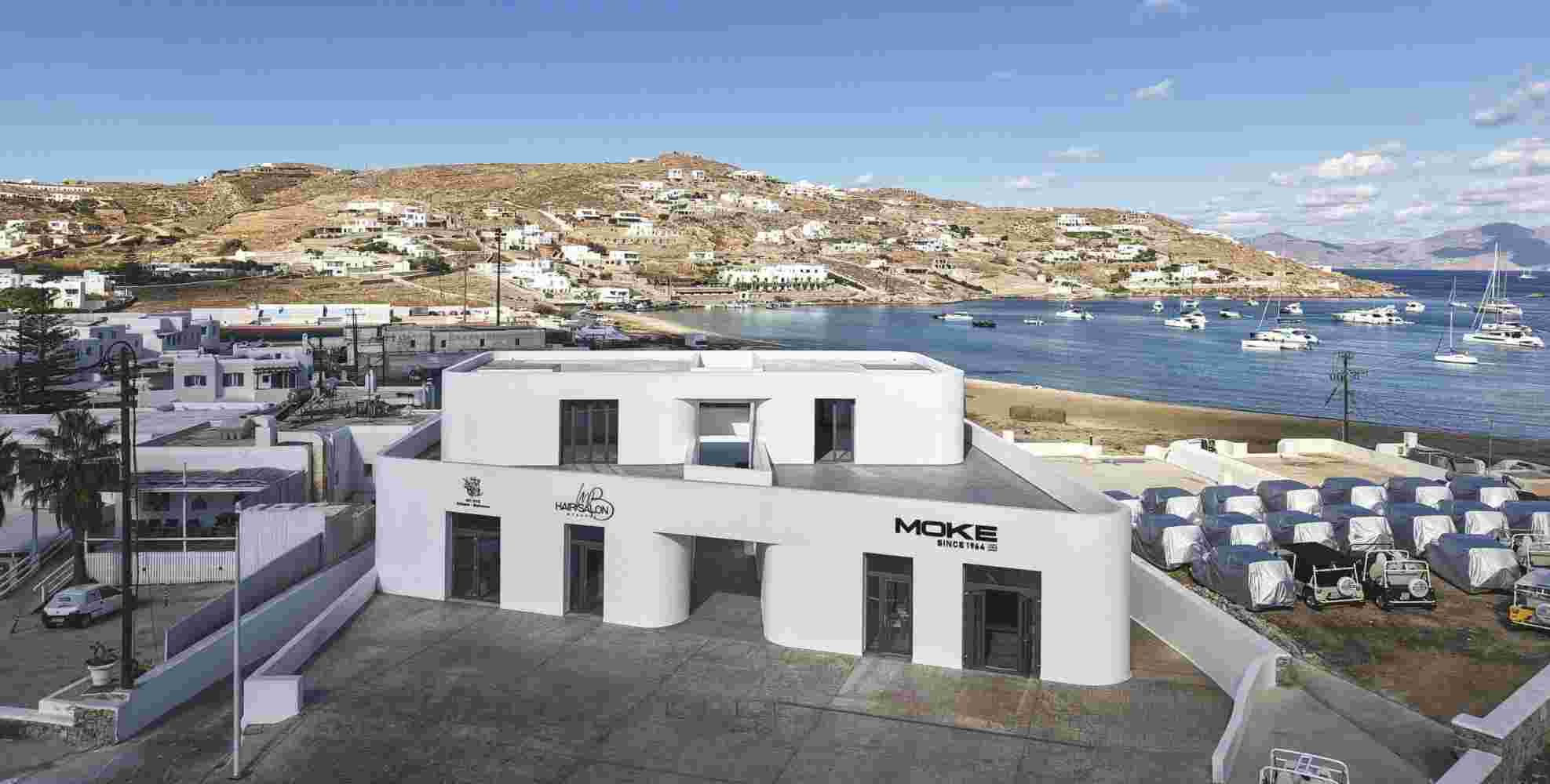 The central location of the plot in Ornos, its direct visual relationship with the main road, and the building’s commercial use led to the intention of creating a landmark structure. During the exploration of Mykonian architectural references, the Church of Panagia Paraportiani emerged as an emblematic example that encapsulates the island’s architectural identity. The curved shell, the white surfaces, and the interplay of light and shadow became key elements informing the project’s morphological approach.