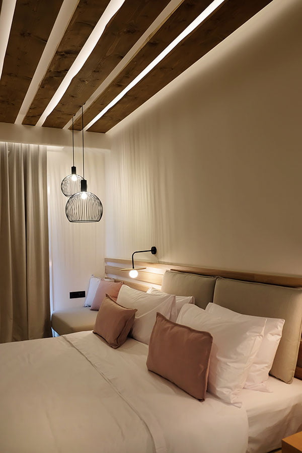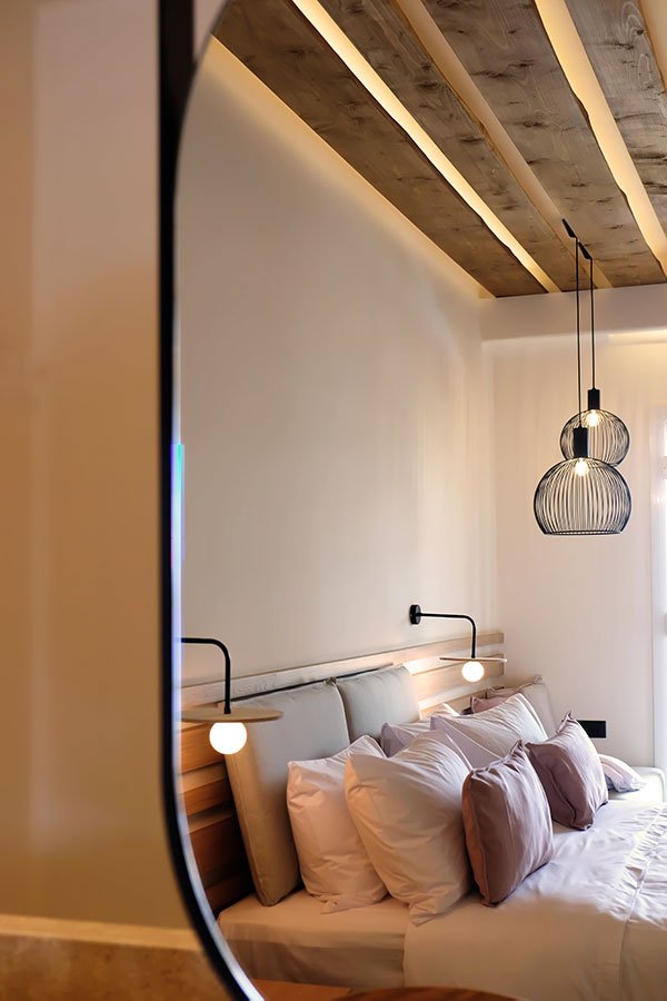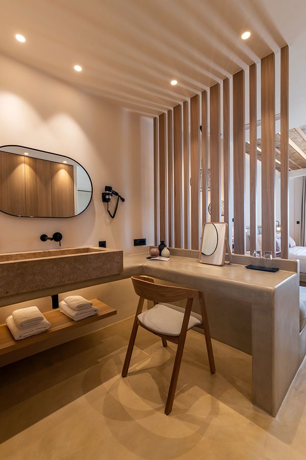 The basic design principles are the clearness and simplicity of the lines, the blending of earthy colors which combined with intense elements, emphasize the design, as well as the play of the light with the perforated surfaces.