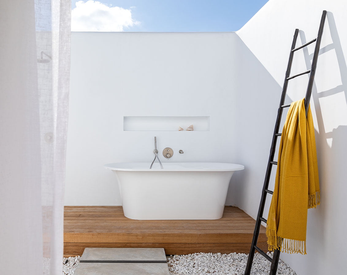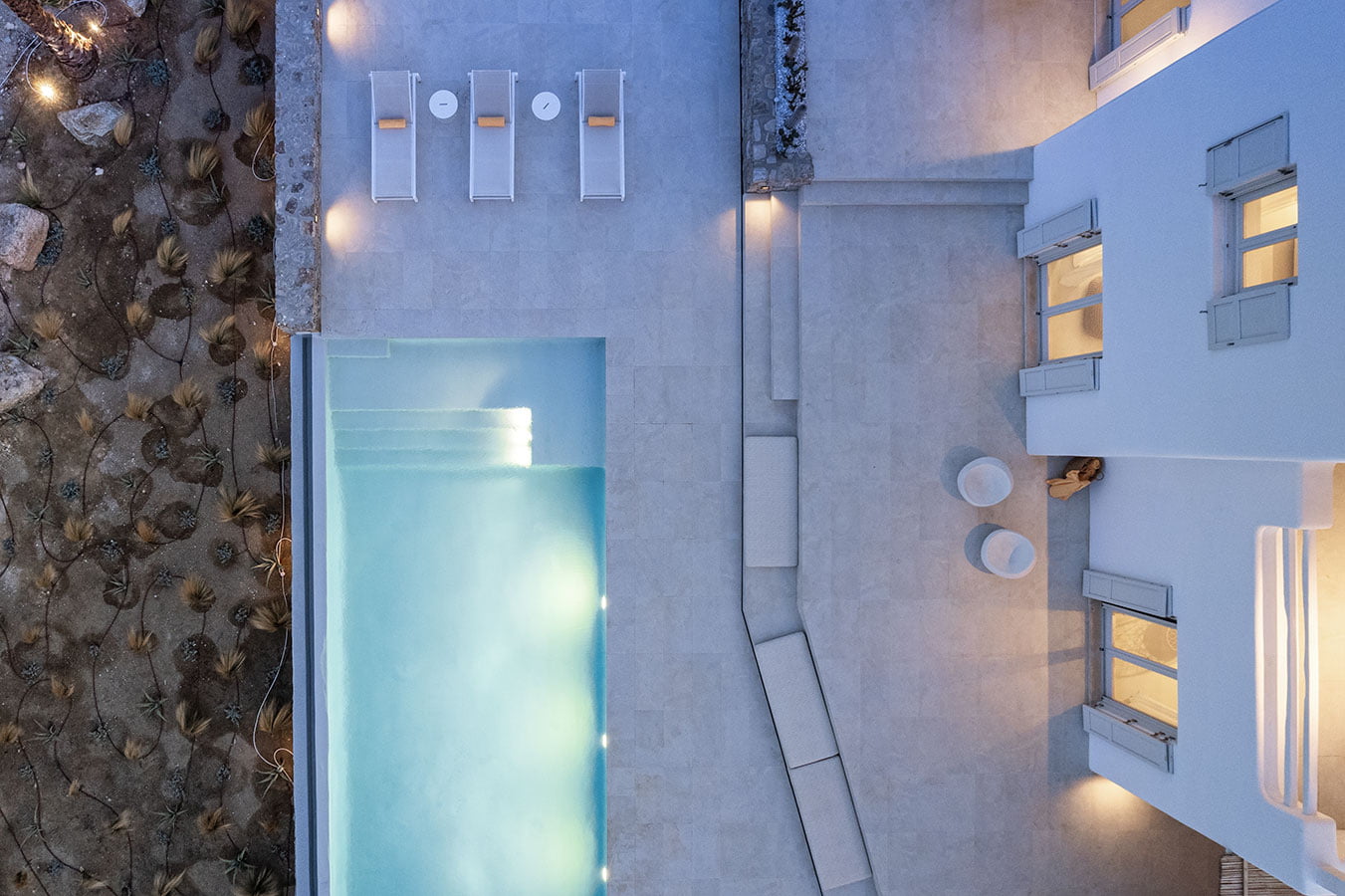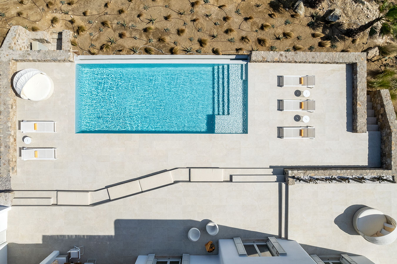 This project concerns the complete restoration of an existing summer house, the study of the interior design and landscape. The plot is located on the island of Mykonos in the area of Kanalia. Built close to the coastline, the house has unobstructed views of the sea and the town of Mykonos.
